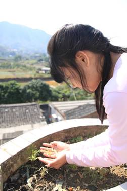 | The ‘parent’ braids the girls’ hair, which not only let the girls go to school decently, but also improve the relationship with each other. | The girls is growing plants on the rooftop with great care. |