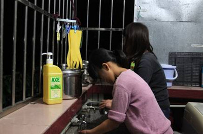 After meals, everyone helps washing dishes and tiding up respectively.