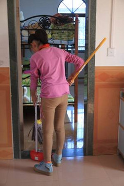 In the leisure time and weekends, the children share the chores to keep the Gentleness Home a decent home.