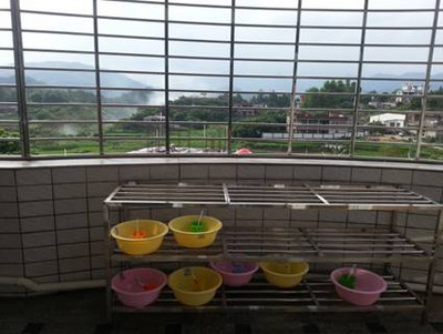 | Every kid has their own washbasin, cup and toothbrush. They clean themselves every morning and night at the basin on the balcony and they tidy up the stuff after that. | ![]() |