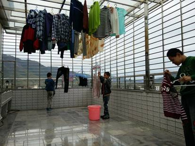 We train children hanging their clothes up on the rooftop everyday. | ![]() |